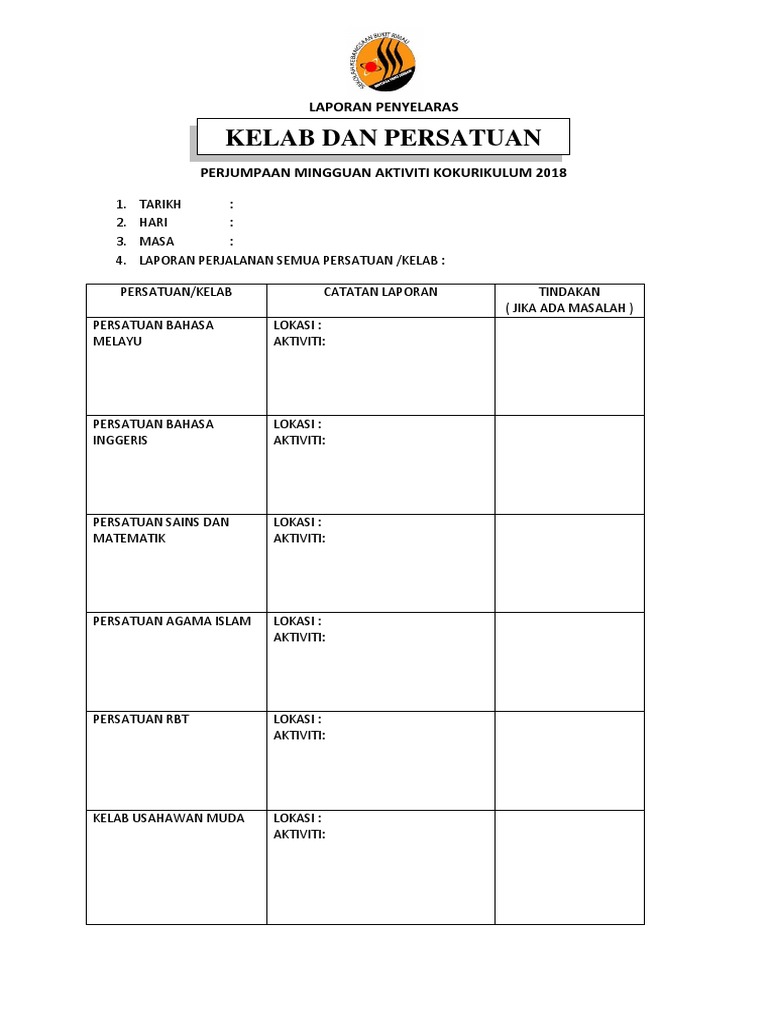8 3 ahli ahli yang bersetuju menyertai aktiviti yang memerlukan perbelanjaan besar boleh dikenakan derma khas bagi membiayai aktiviti tersebut. Smk agama pahang sekolah kluster kecemerlangan 26700 muadzam shah cra8001 moe edu my. En ani bin abdullah penyelia dg 34 019 4317502 bidang tugas. Kelab dan persatuan agensi luar 1 1 inisiatif dan usaha menubuhkan kelab atau persatuan yang dipimpin diangotai dan digerakkan oleh murid murid adalah selaras dengan harsat menggiatkan lagi pelaksanaan program aktiviti kokurikulum di sekolah sekolah seluruh negara.