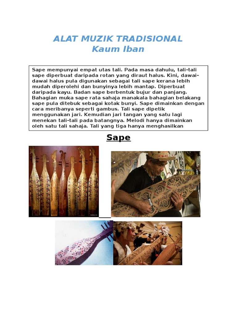 Alat muzik tradisional alat muzik di sarawak. Jenis alat muzik tradisional k ebanyakaan alatalat muzik di sabah dibuat daripada bahan bahan asli. Kecapi mulut dibuat daripada kulit sejenis pokok palma yang dikenali sebagai polod oleh suku kaun kadazandusun. Pada mulanya alat ini diperkenalkan di barat sabah oleh suku kaum brunei tetapi secara tradisional ianya juga digunakan oleh suku kaum bajau dan beberapa suku dusun kadazan.