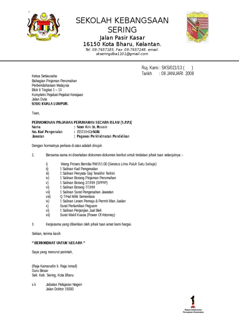 Surat Iringan Pinjaman Perumahan Doc Pdf Document