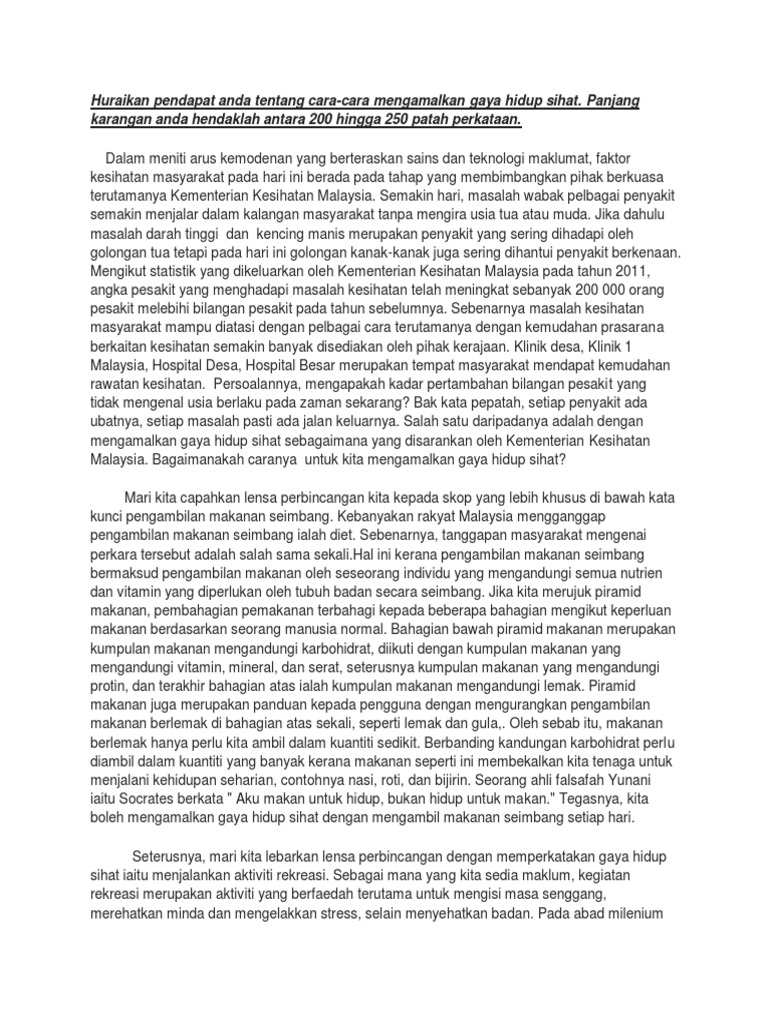 Panjang karangan anda hendaklah antara 200 hingga 250 patah perkataan. Hal ini kerana kita sering dikejutkan dengan berita yang tidak berapa sedap untuk didengari berkenaan masalah kesihatan rakyat malaysia sebagai contoh meningkatnya kes kes penyakit kritikal seperti sakit jantung kanser diabetes dan lain lain penyakit yang berkaitan. Karangan gaya hidup sihat stpm. Dalam era modenisasi ini pastinya ramai tertanya tanya apakah cara mengamalkan gaya hidup sihat.