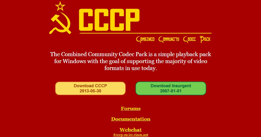 Combined community codec pack is a product developed by cccp this site is not directly affiliated with cccp all trademarks registered trademarks product names and company names or logos mentioned herein are the property of their respective owners. The name is a pun on the name of the soviet union. Anyway the combined community codec pack was created to replace the filter packs provided by other groups which simply often did not work properly or broke compatibility for other formats. Namely the cyrillic alphabet version.