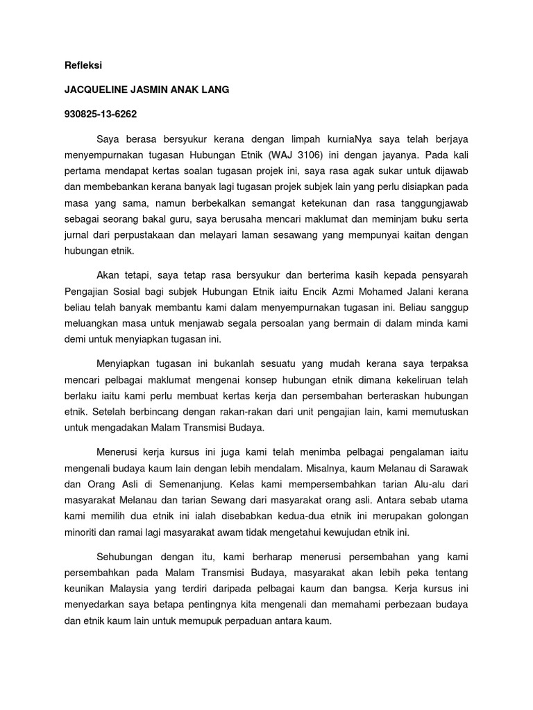 Untuk mengatasi masalah ini saya perlu membahagikan masa dengan baik. Encik a zamri mansor. View essay laporan reflektif hubungan etnik docx from mpu 3112 at open university malaysia. Zt1043 hubungan etnik pensyarah.