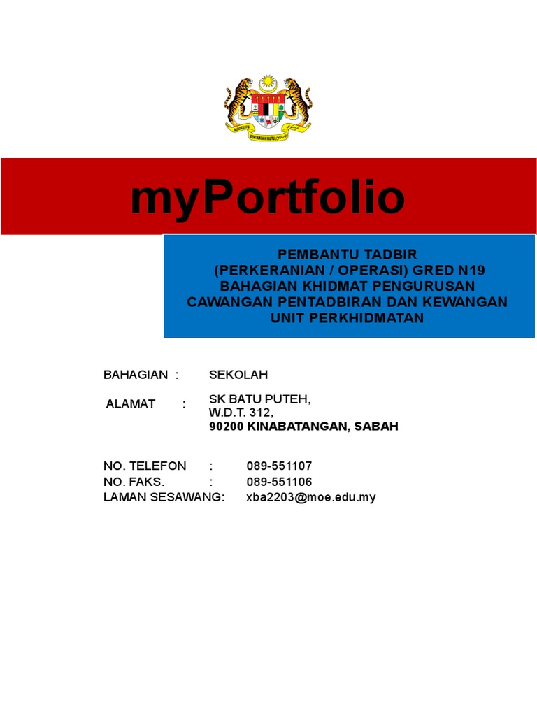 Contoh myportfolio pembantu operasi n11. Pembantu tadbir perkeranian operasi unit pentadbiran dan pengurusan kualiti bahagian governan. Myportfolio pembantu operasi pejabat admin august 12 2018 myportfolio adalah satu kaedah pengurusan ilmu yang memberikan penekanan kepada pengupayaan minda setiap penjawat awam dalam kerangka organisasi berpembelajaran learning organisation. Contoh templat myportfolio untuk sektor awam. Ini bagus dan berguna masa ditemuduga.