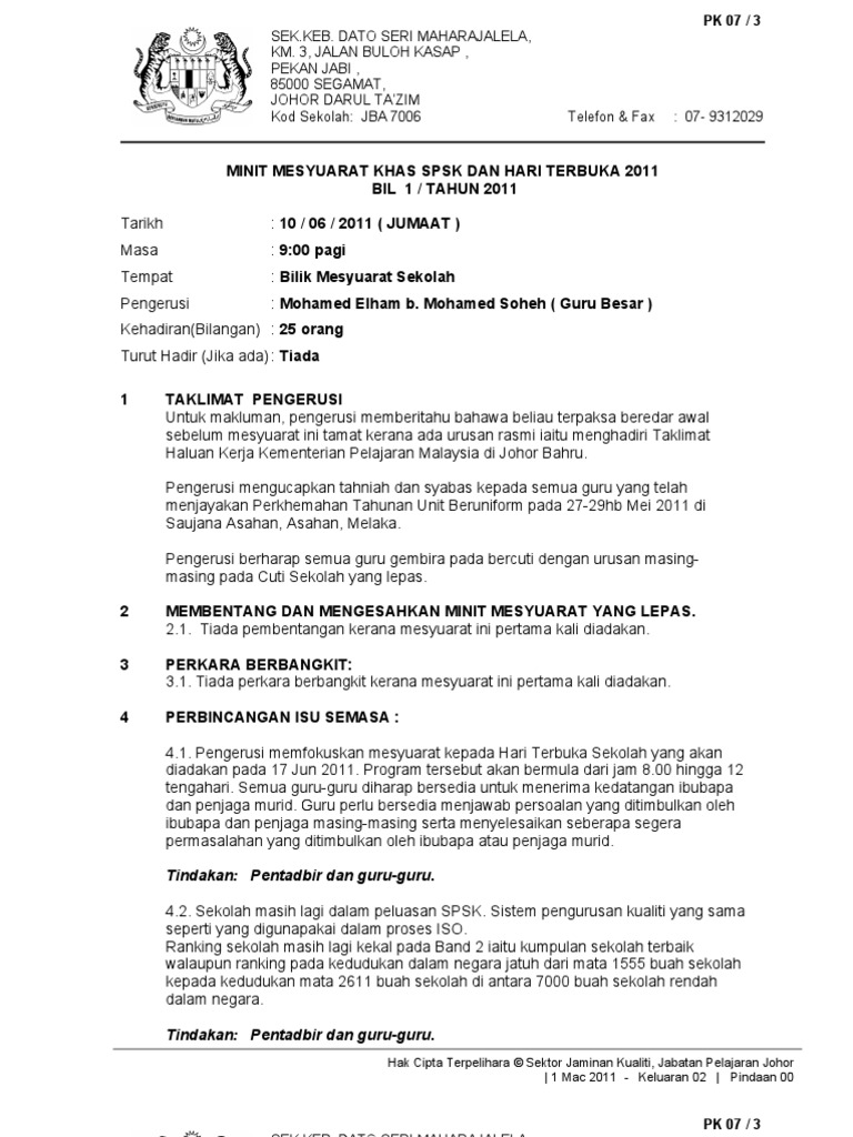 Minit mesyuarat atau minutes of meeting mom adalah penting dalam sesebuah mesyuarat kerana ia akan menjadi panduan dan rujukan buat pekerja dan orang yang hadir atau tidak untuk mengetahui hasil keputusan sesuatu mesyuarat. Untuk memastikan perjalan pengurusan sekolah berjalan dengan lancar mesyuarat perlu dilakukan. Home surat 25 contoh surat edaran minit mesyuarat. Semak format penulisan yang terbaik.
