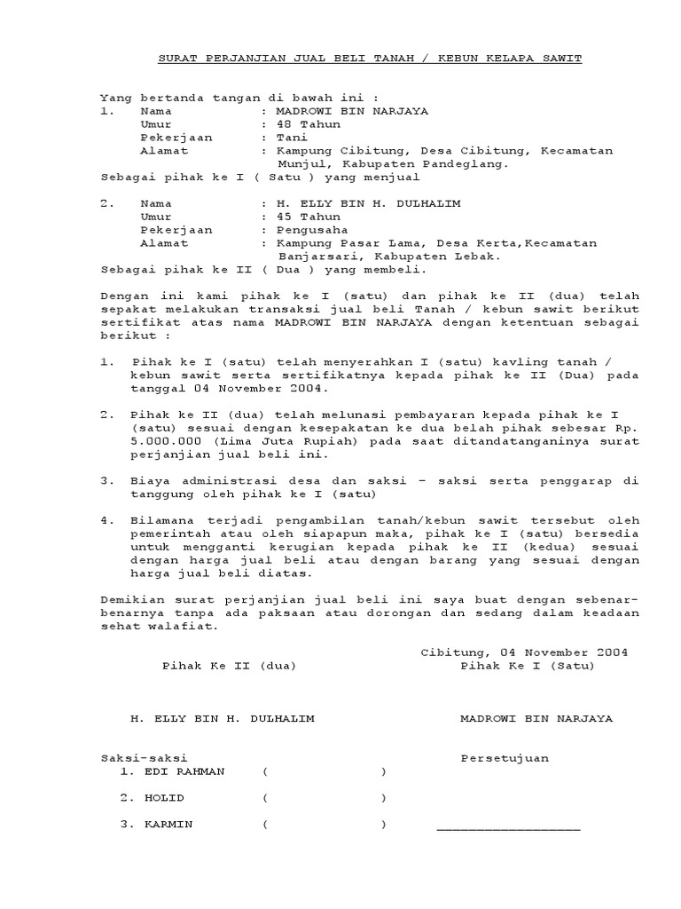Contoh Surat Jual Beli Tanah Kebun Di Malaysia