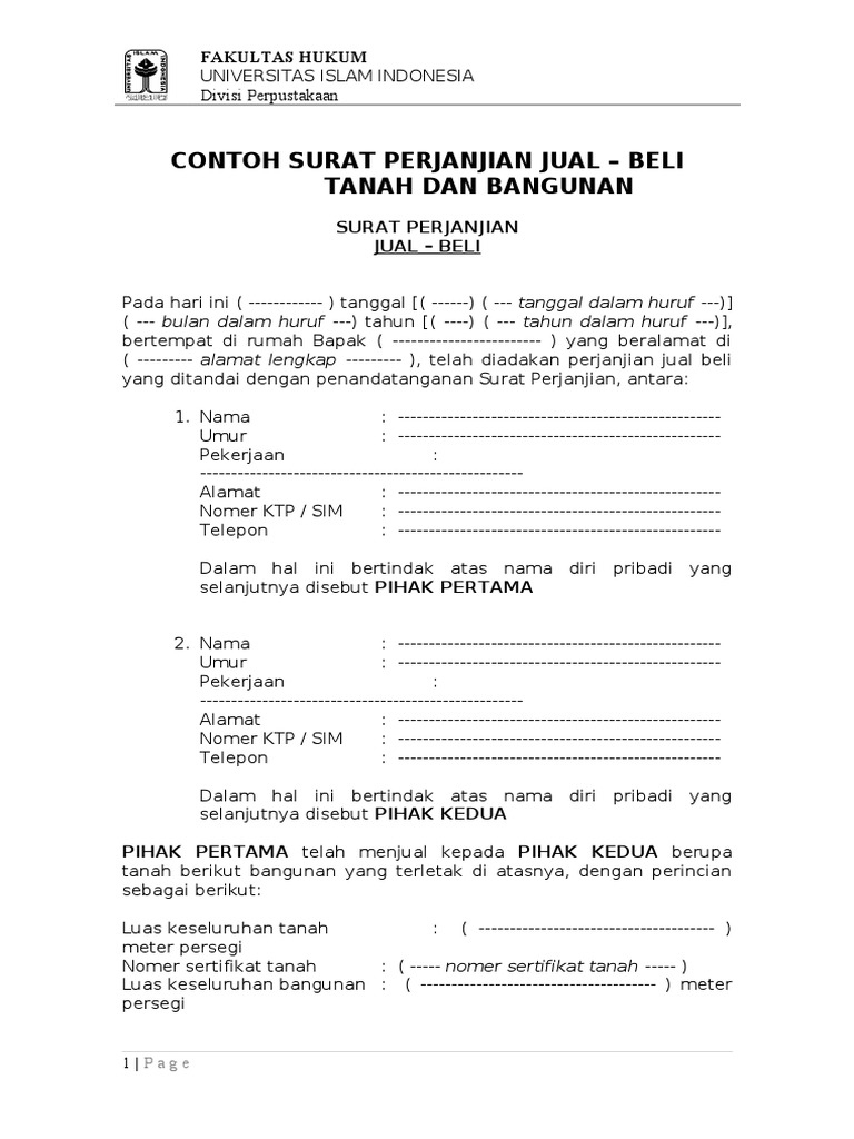 Contoh Surat Perjanjian Jual Beli Tanah Dan Bangunan