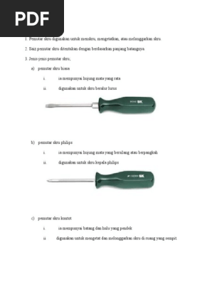 Pemutar skru mata rata. Pemutar skru jenis ini mempunyai mata berpalang dan ia hanya boleh digunakan pada skru jenis kepala phillips sahaja. Terdapat 2 jenis yang biasa iaitu pemutar skru mata rata dan pemutar skru mata philip. Pemutar skru screwdriver kegunaan definisi.