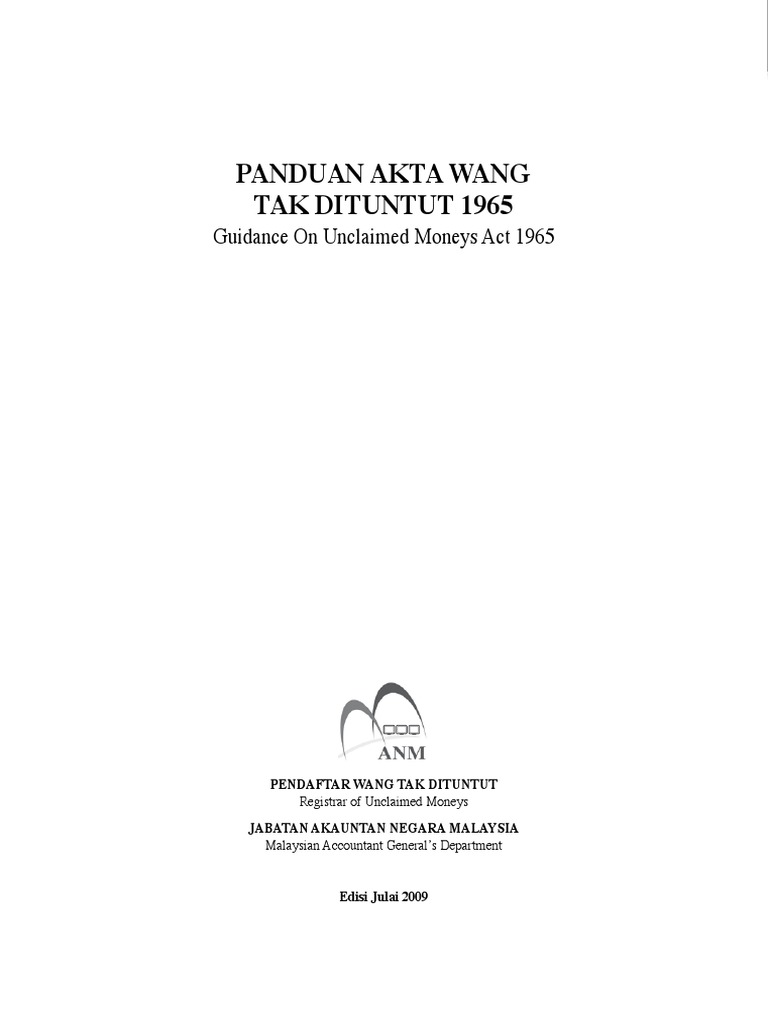 Seksyen 10 akta wang tak dituntut 1965 syarikat firma bertanggungjawab untuk perkara berikut. P u b 221 pada menjalankan kuasa kuasa yang diberi oleh seksyen kecil 1 seksyen 9 akta wang tak dituntut 1965 menteri kewangan telah melantik akauntan negara sebagai pendaftar wang tak dituntut mulai daripada 1 haribulan jun 1975. Pada tahun 2017 heboh di kalangan rakyat malaysia tentang wang tak dituntut wtd yang menyebabkan ramai orang bersesak sesak ke pejabat jabatan akauntan negara malaysia janm untuk menyemak jika ada wtd yang boleh dituntut. Mana mana individu boleh membuat semakan sama ada mereka mempunyai wtd dengan pihak pendaftar pada bila bila masa tanpa ada tarikh luput.