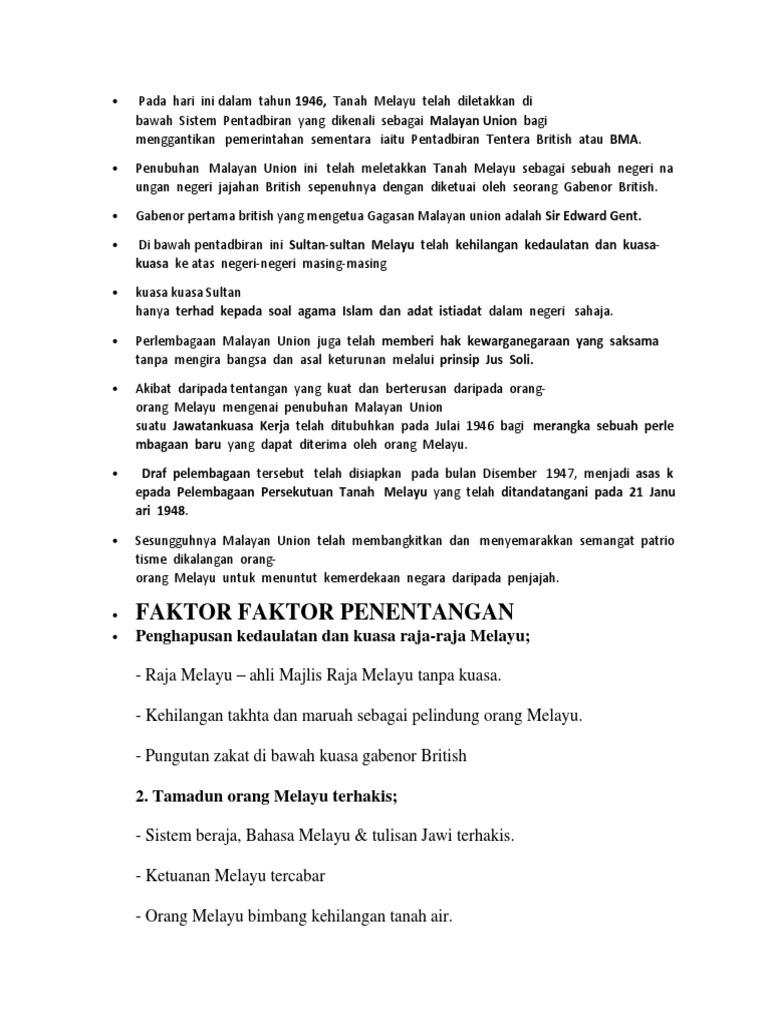 Gabenor pertama malayan union adalah. Di bawah pentadbiran ini sultan sultan melayu telah kehilangan kedaulatan dan kuasa kuasa ke atas negeri negeri masing masing. ø kewarganegaraan sama rata melalui prinsip jus soli yang menjadi asas kerakyatan mu. Beliau adalah seorang tokoh penting dalam pembentukan malayan union yang ditubuhkan pada 1 april 1946 di kuala lumpur dan gabenor malayan union yang pertama. Dan seperti dijangka raja raja melayu memulaukan majlis perlantikan gent berikutan tindakan orang orang melayu yang berhimpun di luar hotel tempat mereka menginap dan berkabung dengan melilit kain putih pada songkok mereka.