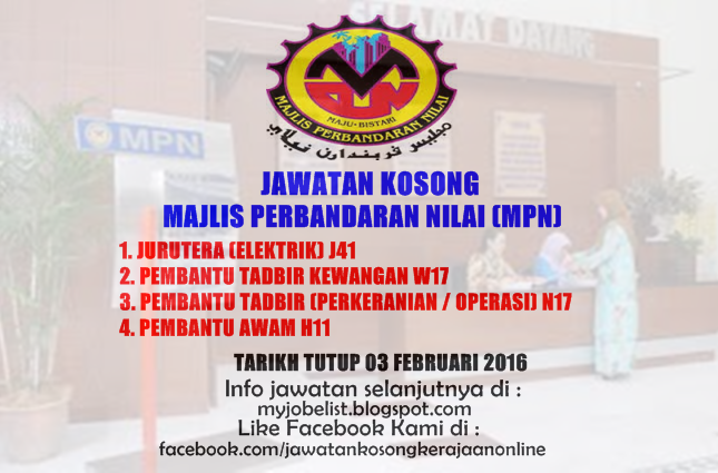 Jawatan kosong majlis perbandaran nilai. Untuk memohon sila ikut langkah seperti di bawah. Tercatat dalam bulan sep 2020 iklan jawatan kosong kilang di nilai 3 terkini 2018 ini lebih dari 1000 orang mencari infonya.