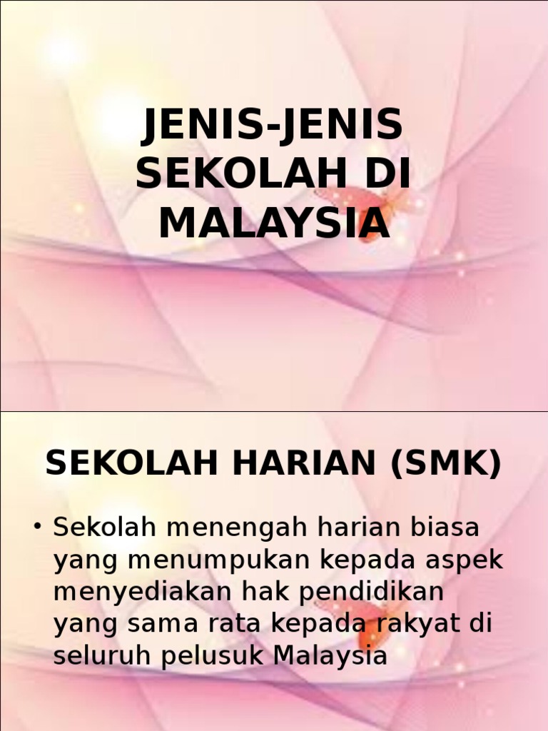 Jenis jenis sekolah di malaysia. Sekolah rendah awam di malaysia terbahagi kepada dua jenis iaitu sekolah kebangsaan dan sekolah jenis kebangsaan. Jenis jenis sekolah di malaysia cikgu hailmi sabtu disember 29 2012. 2 sekolah jenis kebangsaan bahasa cina atau bahasa tamil digunakan sebagai bahasa penghantar. Sekolah jenis kebangsaan merupakan salah satu jenis sekolah rendah dari tahun 1995 hingga 2000 distribusi rencana malaysia ketujuh membagikan 96 5 ke sekolah nasional yang hanya memiliki 75 dari siswa sekolah dasar.