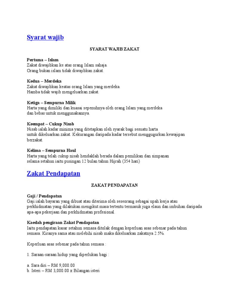 Kadar bayaran zakat pendapatan. Menggunakan kaedah pendapatan kasar tanpa tolakan 2 5 atas jumlah pendapatan kasar setahun jika pendapatan tersebut melebihi nisab tahun semasa. Setahun adalah rm2000 x 12 bulan rm24000 setahun. Pakar pakar di kalangan ulama kontemporari tidak meletakkan haul sebagai syarat wajib zakat pendapatan. Jumlah pendapatan a b perbelanjaan yang dibenarkan setahun.