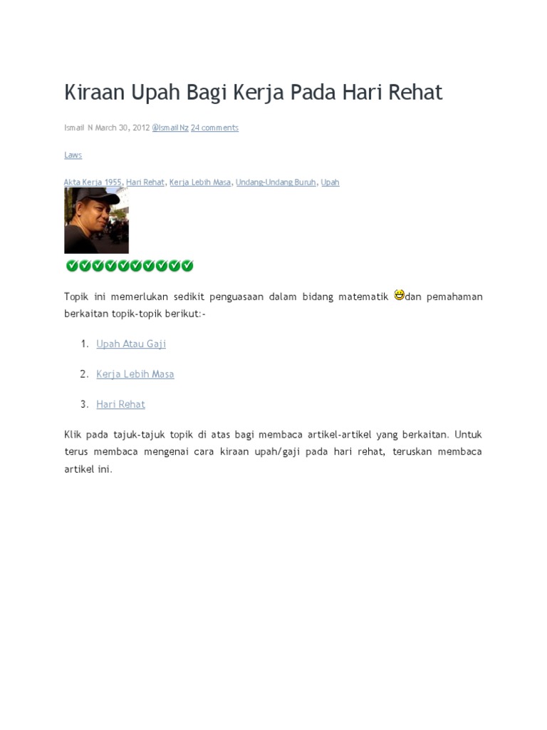 Kiraan Upah Bagi Kerja Pada Hari Rehat