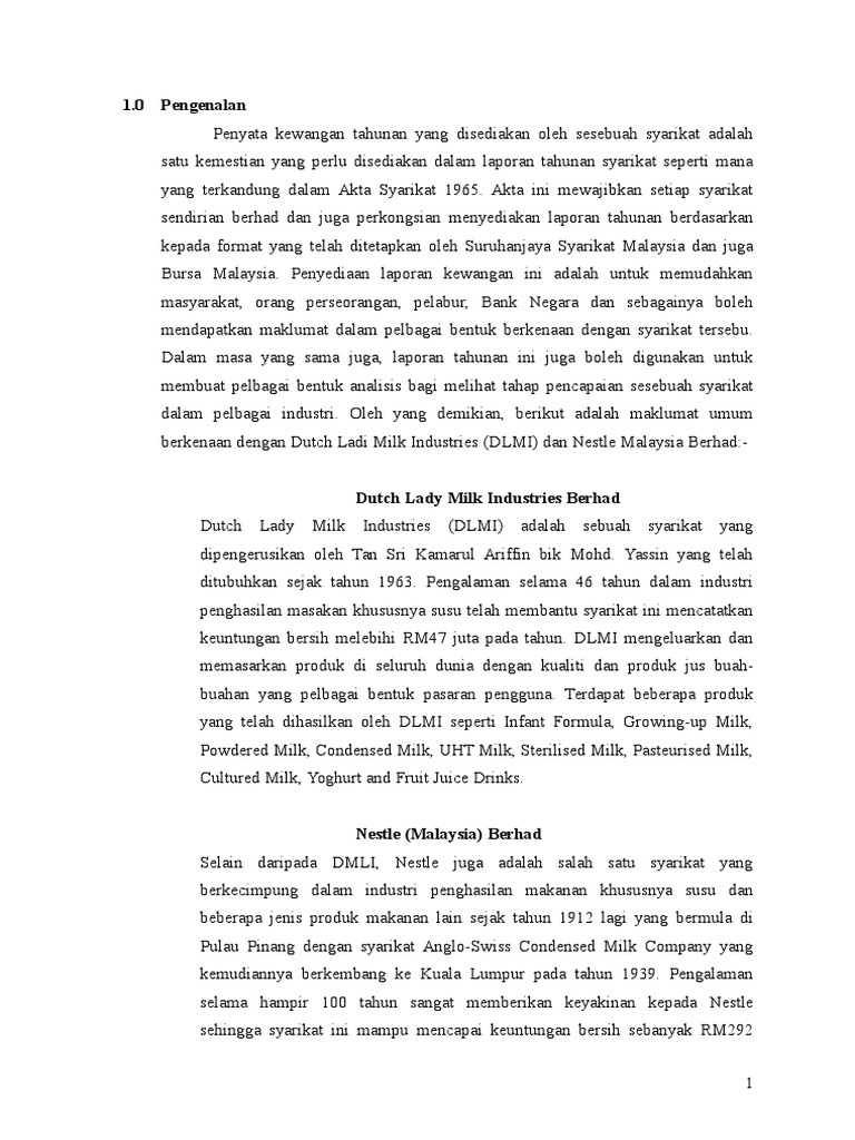 Suku bunga tetap pada tingkat yang tinggi yang memaksa kita untuk mengintensifkan pengawasan terhadap modal kerja dengan pandangan untuk tetap membuat biaya pembelanjaan berada di dalam batas batas yang dapat diterima. Laporan tahunan nestlé malaysia berhad bagi tahun kewangan berakhir 31 disember 2013. Ulasan prestasi pada tahun 2013 ekonomi global menunjukkan beberapa tanda tanda pemulihan yang memberi kesan positif ke atas negara ini lalu ekonomi malaysia mencatatkan pertumbuhan sebanyak 4 7 bagi tahun tersebut. Quality of food and quality of life go.
