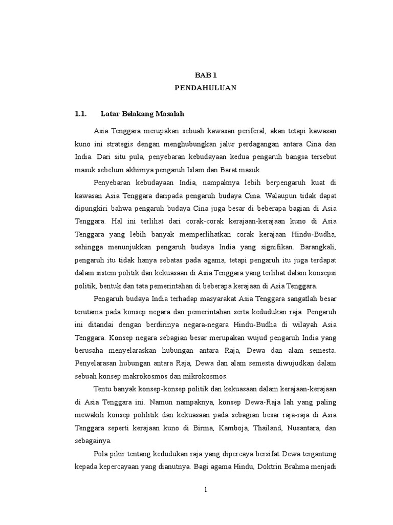 Bab i pendahuluan latar belakang asia tenggara adalah sebuah kawasan yang terletak di antara negeri cina dan india beserta gugusan gugusan pulau yang terbentang didepannya.