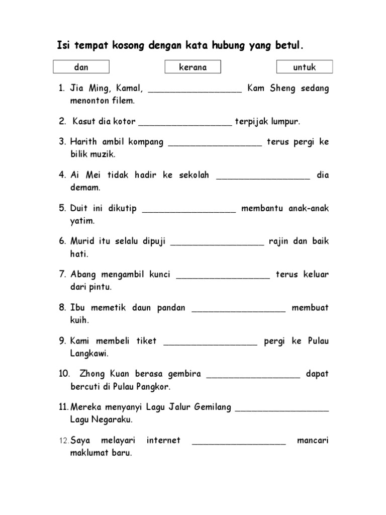 Latihan kata hubung tahun 5. Tatabahasa add to my workbooks 34 download file pdf embed in my website or blog add to google classroom. Kata hubung latihan tahun 3 2 kata hubung tahun 3 1 kata kosa 4 kata nama khas 1 kata seru 3 kata seru contoh 4 kata tanya 1 kbsr perkataan berlawan 17. Kata hubung ialah kata yang menghubungkan kata dengan kata. Latihan kata berimbuhan akhiran.