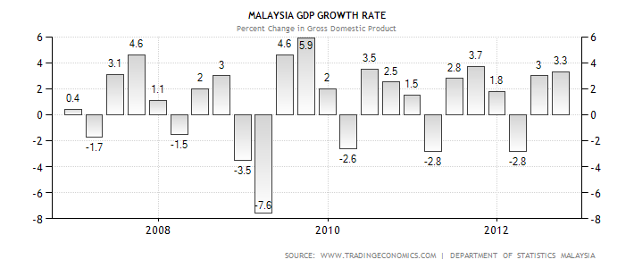 Malaysia gdp growth rate for 2017 was 5 74 a 1 29 increase from 2016. Malaysia gdp growth rate for 2018 was 4 74 a 1 decline from 2017. Gdp is the sum of gross value added by all resident producers in the economy plus any product taxes and minus. Malaysia gdp growth rate for 2016 was 4 45 a 0 64 decline from 2015.