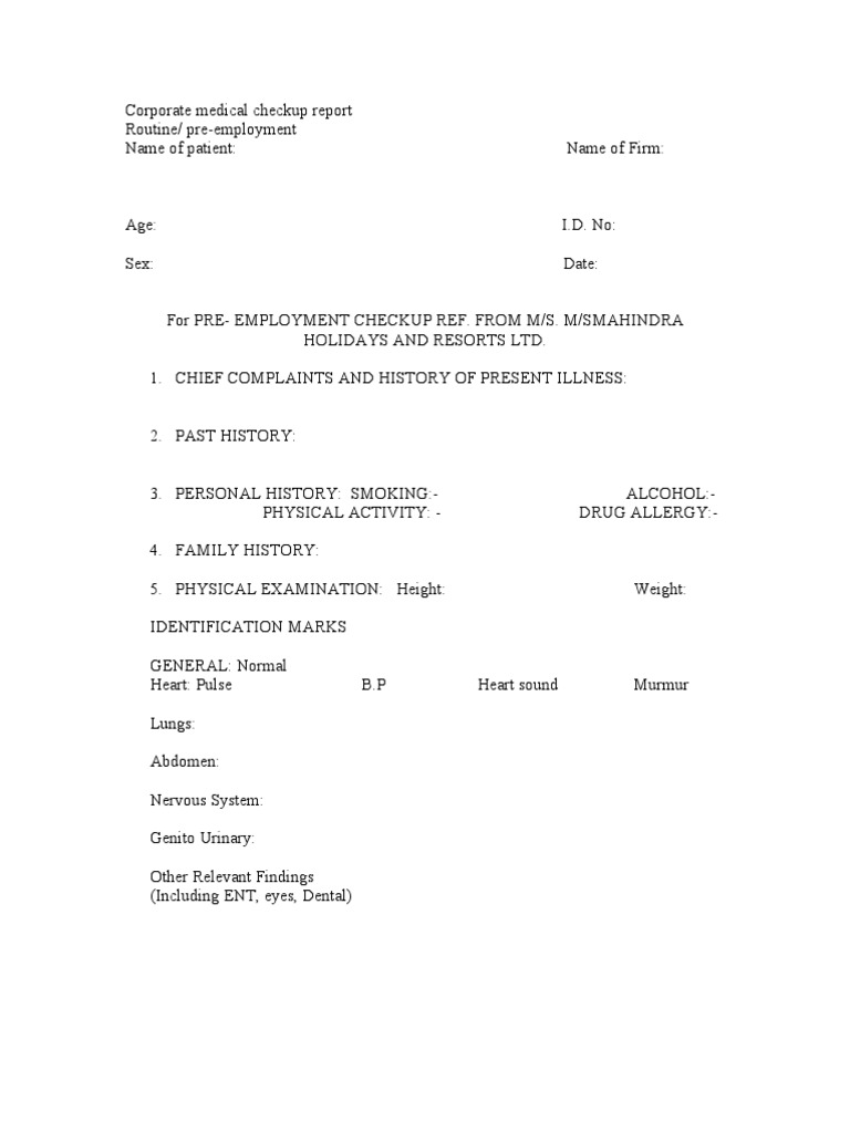 Medical check ups intimation advice me on the format of medical check up circular. The target audience of this particular form are all the individuals who seek to check their physical health and the organizations who want to. Read on to get the details about the elements in your body that are examined by the doctors during a general medical check. Sample medical examination form for police.