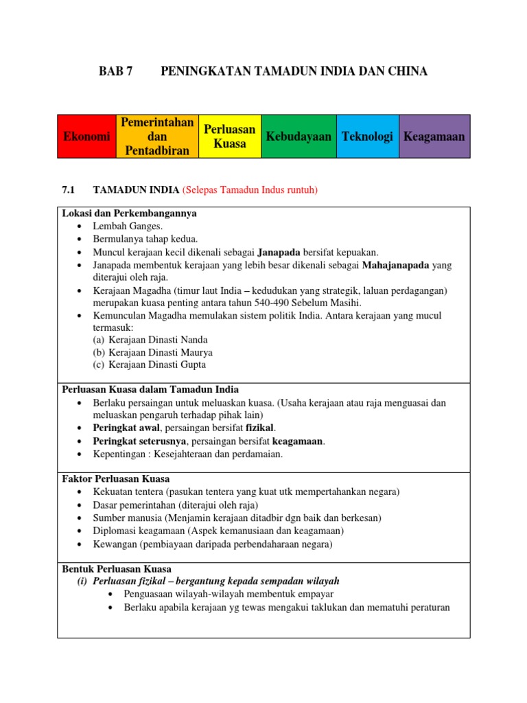 Nota peningkatan tamadun india dan china. Nota sejarah tingkatan 4 bab 2 peningkatan tamadun. Koleksi nota ringkas sejarah form 4 bab 2 berkaitan tamadun yunani rom india dan china. Tajuk tudingan 2012 peningkatan tamadun india dan china ekonomi seni bina sains teknologi pendidikan tamadun india. Download view bab 7 peningkatan tamadun india dan china tingkatan satu kssm as pdf for free.