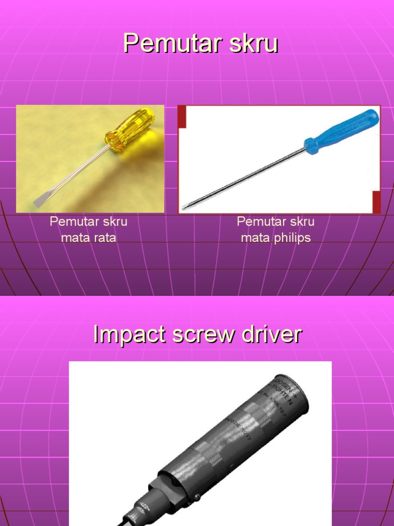 Digunakan dengan cara memutar pemegangnya pada arah lawan jam untuk melonggarkan dan arah jam untuk mengetatkan skru. B pemutar skru mata rata juga dikenali sebagai pemutar skru biasa. Pemutar skru mata rata dan sepana hujung terbuka b. Pemutar skru ini mempunyai mata rata dan digunakan untuk memutar skru jenis kepala beralur.