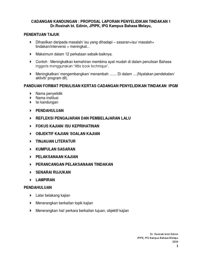 Cadangan Kandungan Proposal Laporan Penyelidikan Tindakan 1 Dr Rosinah Bt Edinin Jpipk Ipg Kampus Bahasa Melayu Penentuan Tajuk