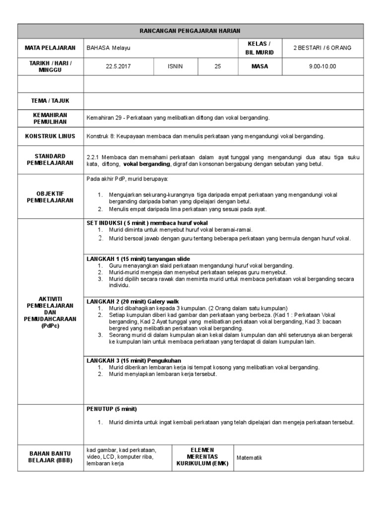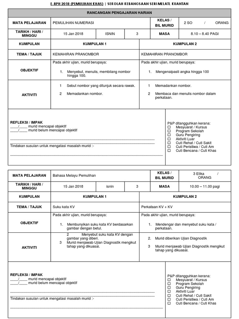 Rpt literasi asas 1 3. Sekolah menengah kebangsaan cherang ruku program pendidikan khas integrasi tel. Kelas mata pelajaran orang bil murid tarikh hari masa minggu kumpulan kumpulan 1 kumpulan 2. Rph bm tahun 2 kelas pemulihan.