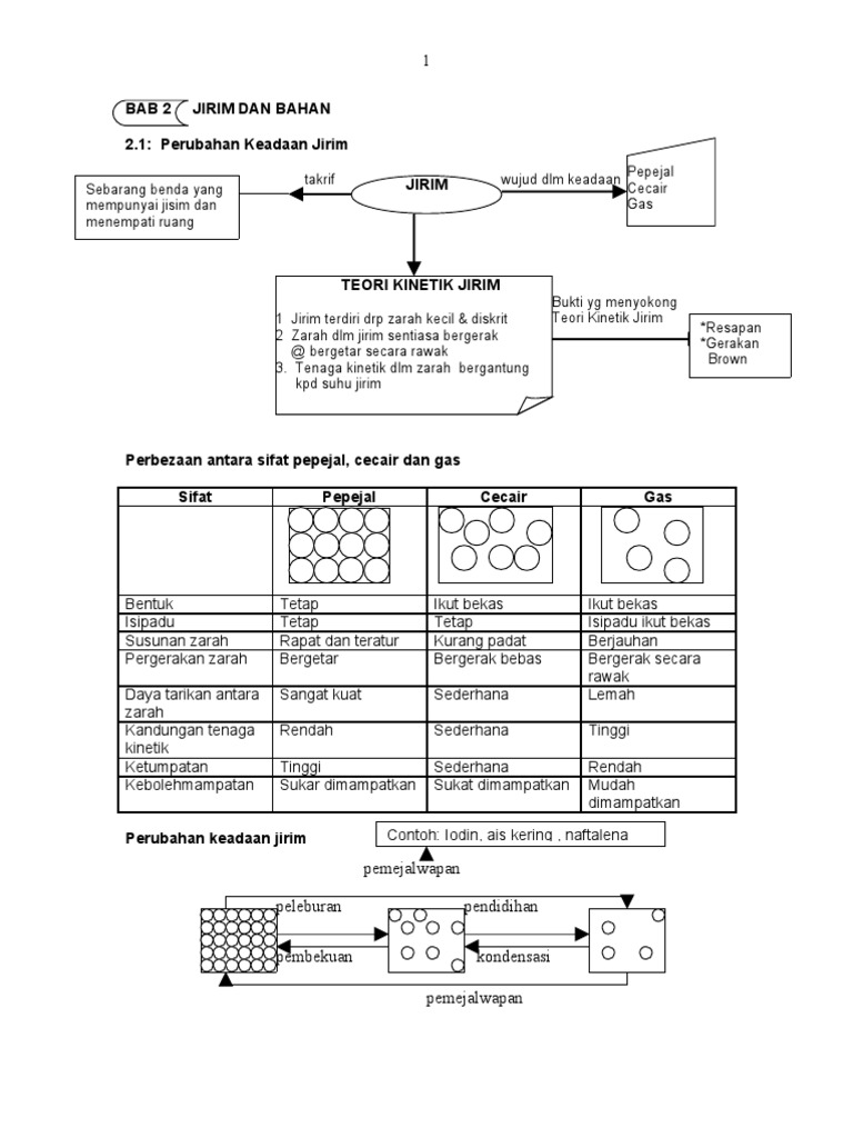 Bab 4 jirim dan bahan cikgu taufik 2. Teori kinetik jirim dapat menerangkan sifat sifat jirim dalam tiga keadaan pepejal cecair gas diantaranya jirim terdiri daripada zarah yang halus diskrit zarah sentiasa bergerak dan bergetar zarah sentiasa berlanggaran diantara satu sama lain dan dengan bekasnya daya tarikan wujud antara zarah dalam jirim. Blog pendidikan sains am tingkatan 4 saturday 26 september 2015. Bab 5 tenaga dan perubahan kimia.