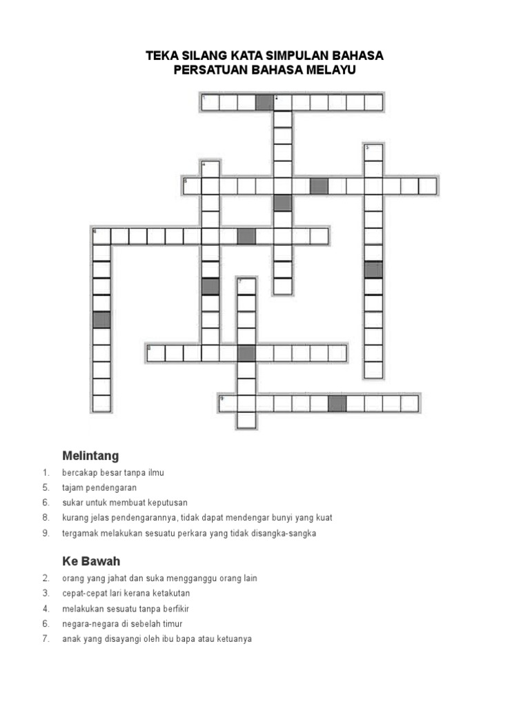 Kalau betul ya maka kamu semua berada di kawasan yang betul. Thursday march 7 2013. Sehubungan dengan itu saya tertarik untuk berkongsi 15 jenis permainan bahasa berserta jawapannya yang disediakan oleh encik mohamed naim daipi yang boleh dilaksanakan dalam aktiviti pembelajaran dan pemudahcaraan pdpc. Pelbagai teka silang kata bahasa melayu mudah yang sangat penting di ambil dari laman web berikut.