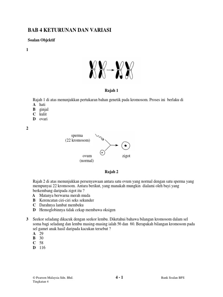 Soalan Sains Tingkatan 4 Bab 3 Keturunan Dan Variasi