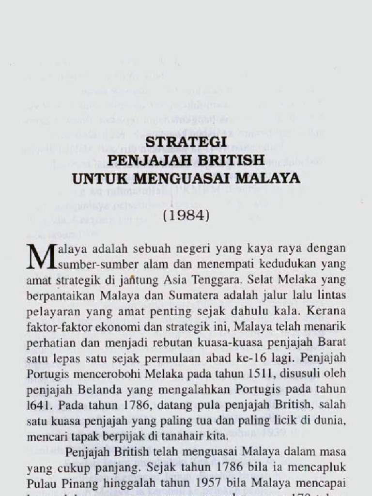 Strategi penjajah british untuk menguasai malaya. Strategi menandatangani perjanjian p strategi. Atas desakan british bendahara wan ahmad bersetuju memberikan wan mansur jawatan raja muda semula dan memberikan elaun sebanyak 200 sebulan kadar yang ditentukan oleh cecil smith linehan a history of pahang jmbras hlm. Rodger sebagai residen pahang 1888 beliau telah memperkenalkan jawatan pemungut cukai dan majistret serta memperkenalkan sistem lesen dan permit pungut hasil hutan cukai tanah dan sistem kerah pembesar melayu tok gajah dato bahaman dan mat kilau melancarkan pemberontakan pada disember 1891 dan serang balai polis lubuk.
