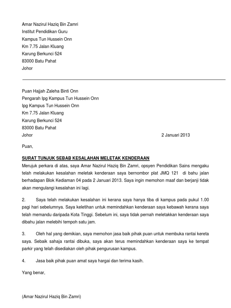 Contoh surat tunjuk sebab mudah dan terbaik.