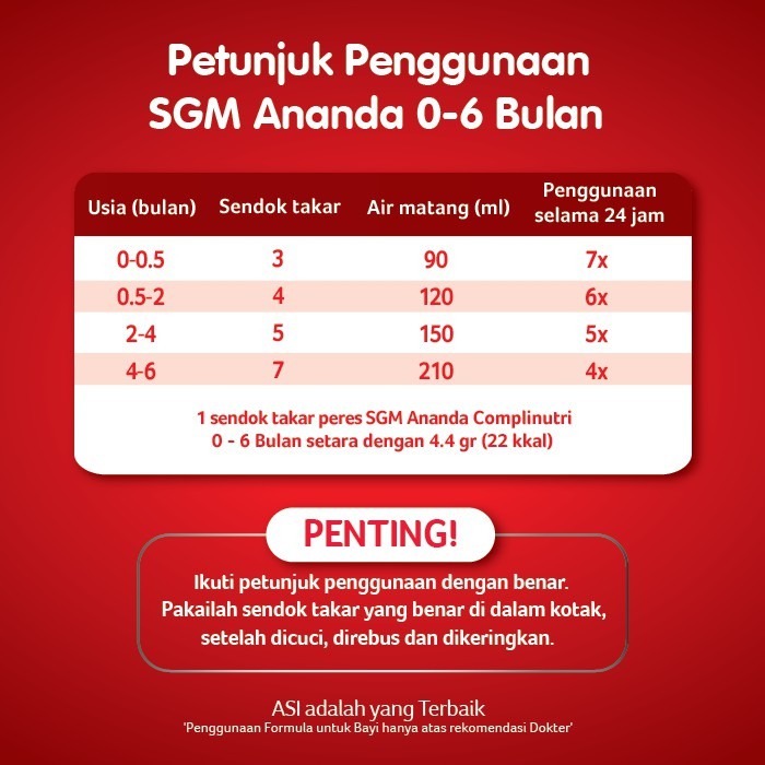 Dan bayi yang memang baru lahir umumnya akan membutuhkan asupan makanan dalam jumlah yang cukup banyak hal ini untuk membantu pertumbuhan juga perkembangannya sehingga si kecil akan lebih banyak membutuhkan asupan susu. Cara menentukan takaran membuat susu sgm ananda 0 6 bulan yang kedua yaitu dengan memperhatikan usia si bayi. Beberapa kondisi mau tidak mau membuat bayi harus mendapatkan sufor guna memenuhi kebutuhan zat gizi bayi. Takaran susu formula untuk bayi 1.