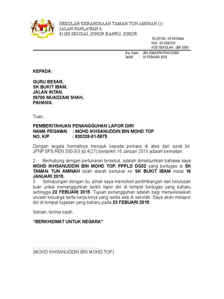 Contoh surat tangguh lapor diri guru. Tekan butang untuk muat turun. Kerjasama pihak tuan amat saya hargai. Untuk memohon penangguhan apa yang perlu anda lakukan ialah.
