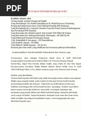 Kita dapat berkumpul dalam majlis yang penuh bermakna pada petang ini bagi meraikan guru guru dan staf smk kampong jawa. Yatiman b kamsidin assalamualaikum w b t. Sila dapatkannya di sini. Majlis makan malam temu mesra kelab kimia oleokimia teknologi kimia 2014 teks ucapan muhammad hilman bin abdul mustapa ketua pengarah majlis makan malam jumaat 25 april 2014 hotel bangi putrajaya bismillahirrahmanirrahim.
