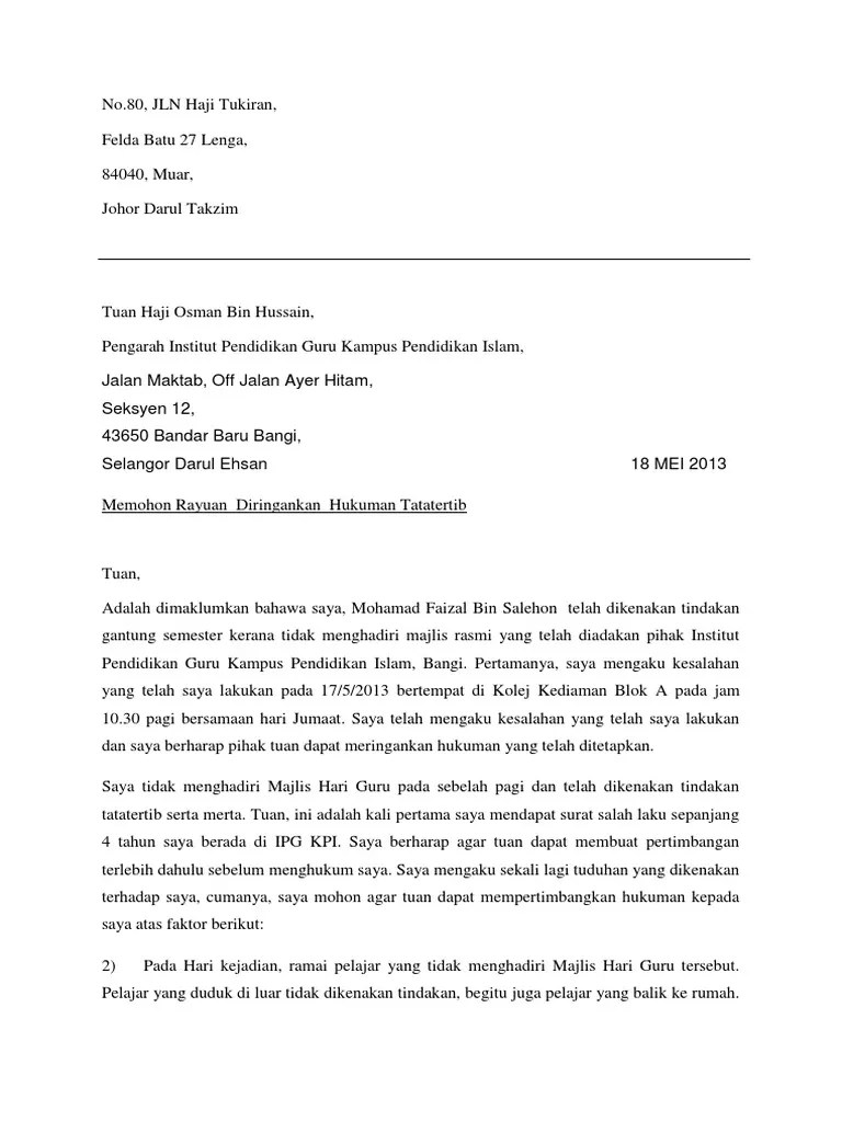 Tindakan Tatatertib Contoh Surat Penjelasan Kesalahan