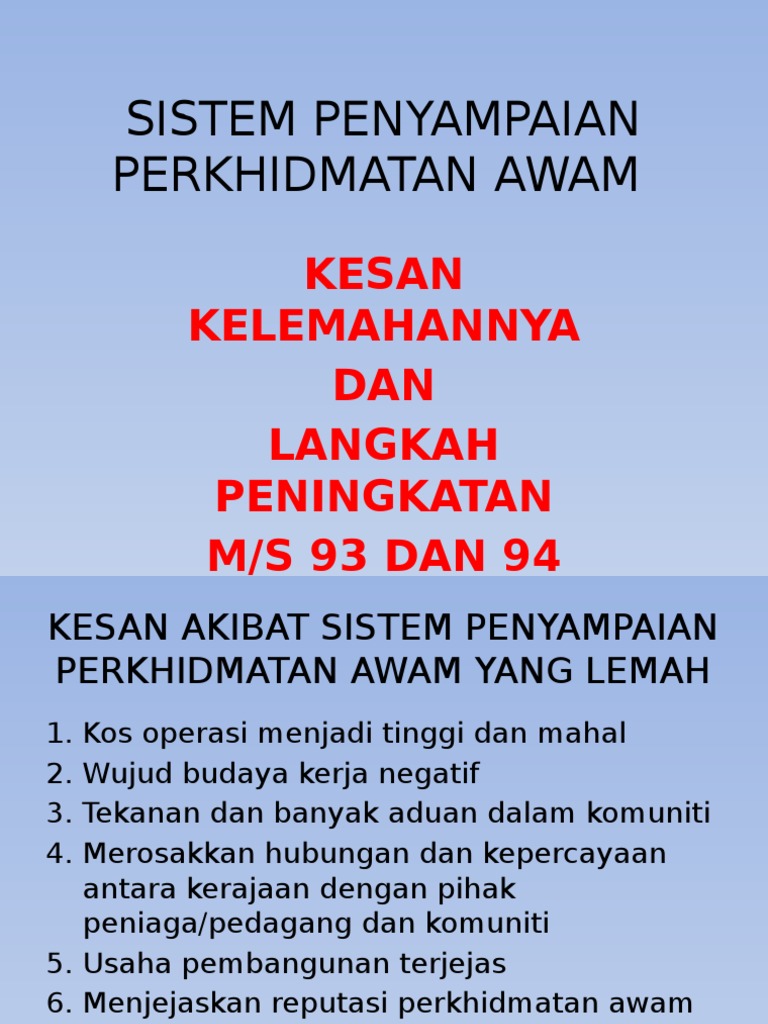 Perkhidmatan awam dalam menyediakan perkhidmatan terbaik kepada rakyat. Sistem penyampaian perkhidmatan kerajaan. Sistem penyampaian perkhidmatan awam yang cekap amat diperlukan bagi menjamin kelancaran dan keberkesanan pelaksanaan dasar dan strategi pembangunan negara. Membangun dan menyelenggaran sistem sistem aplikasi ict sektor awam negeri.