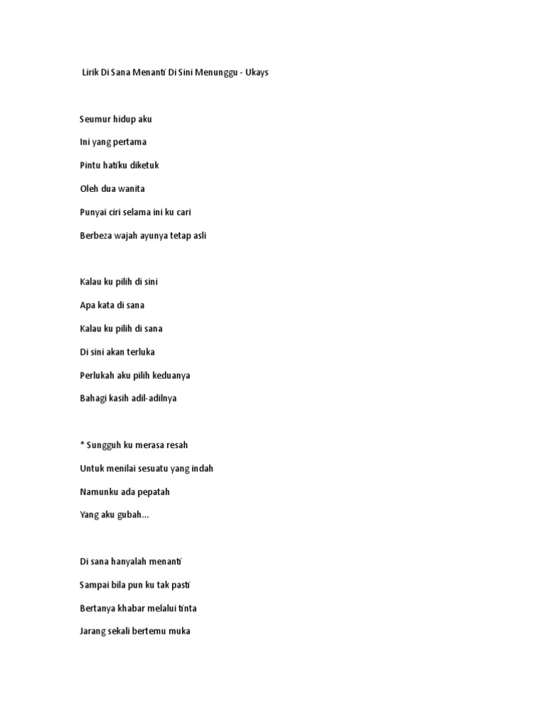 Di sana menanti di sini menunggu lyrics. Download lagu disana menanti disini menunggu ukays flv youtube. 4 dari 5 posted on. Disana menanti disini menunggu chords by ukays.